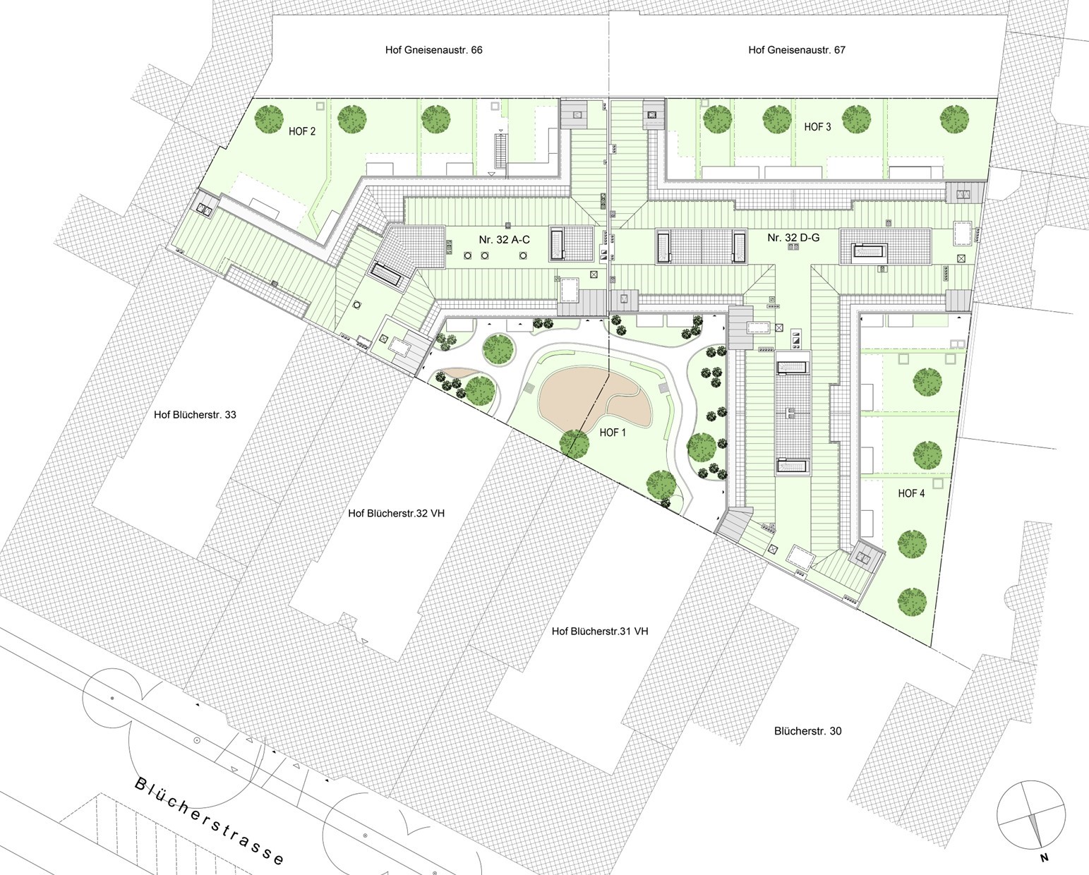 Die Höfe wurden mit neu angelegtem Grün aufgewertet.